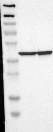A Western blot analysis is performed on a panel of human tissues and cell lines to evaluate antibody specificity. For antibodies with unreliable result a revalidation using an over-expression lysate is performed.